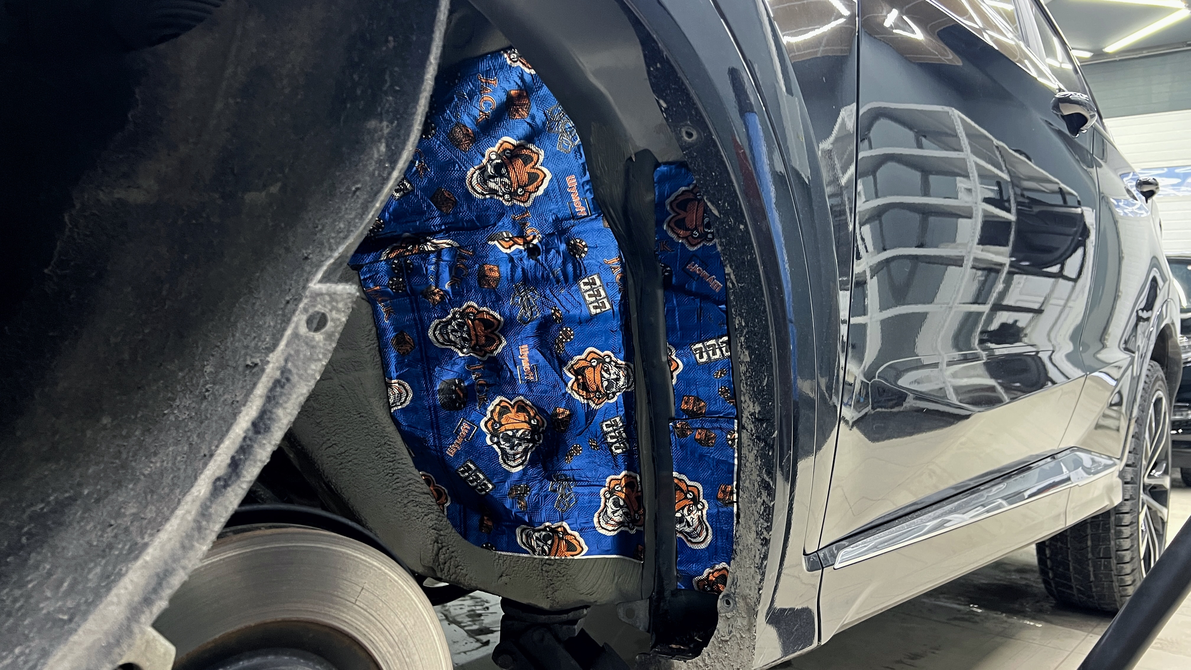 На крылья клеим также Шумофф Base 4 А для участка такого как арки используем шумопоглотитель Шумофф Flex A15. Что также позволит значительно уменьшить исходящий от них шум.